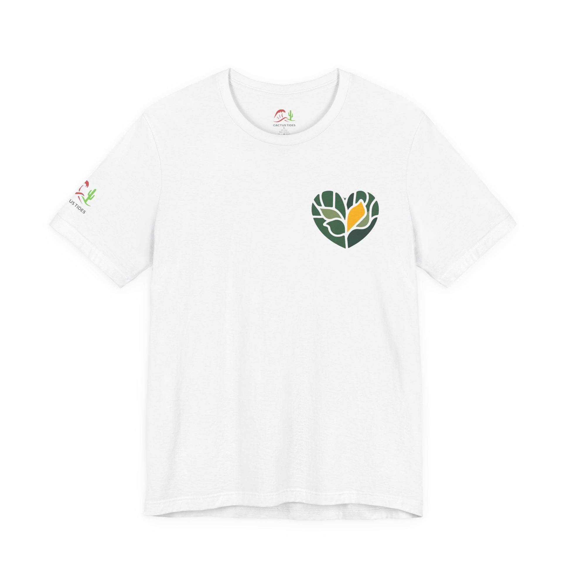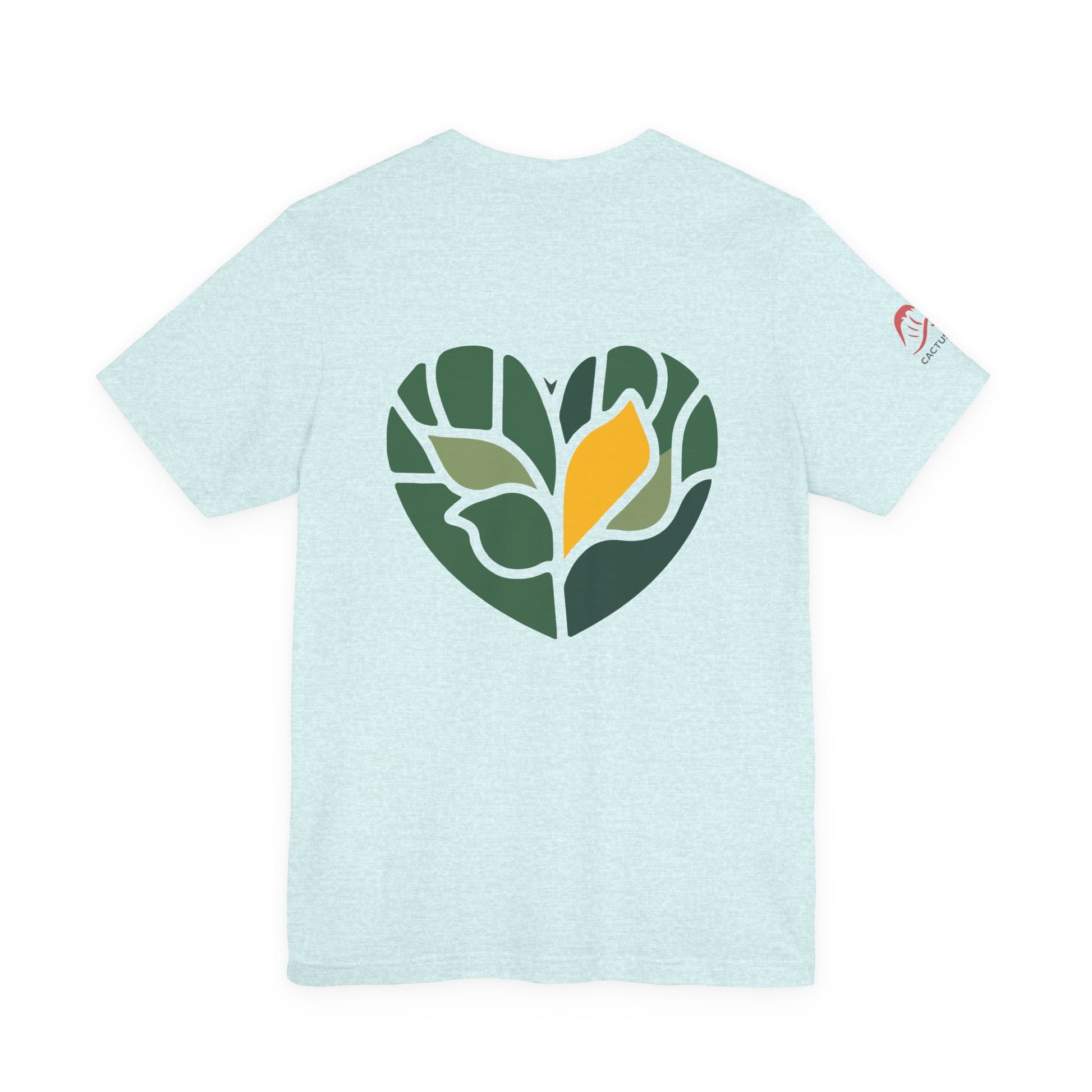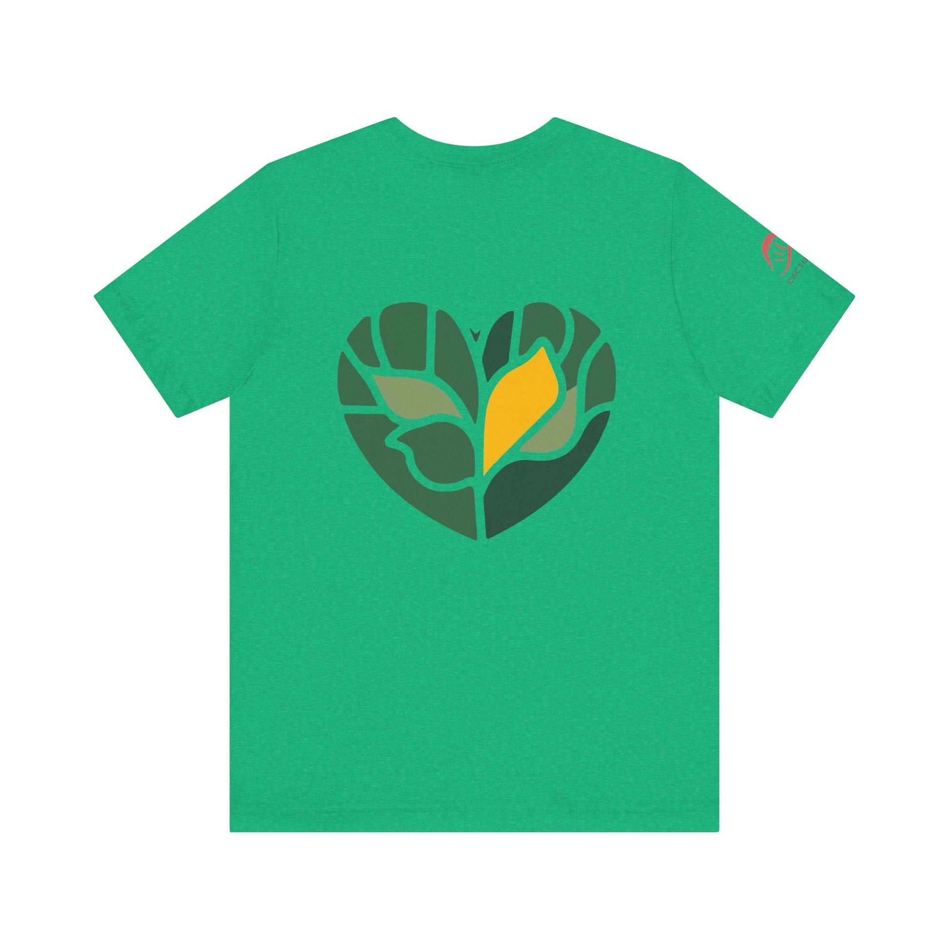 Elevate your wardrobe with this stylish Unisex Jersey Short Sleeve Tee, designed for those who appreciate both comfort and contemporary aesthetics. Made from 100% Airlume combed and ring-spun cotton, this lightweight tee offers breathability, making it perfect for all-day wear. The eye-catching heart design featuring vibrant leaves adds a touch of nature-inspired charm, allowing you to express your love for the environment. Whether you're enjoying a casual day out or layering for a semi-formal occasion, this tee is versatile enough to fit into any setting. Ideal for eco-conscious individuals, outdoor enthusiasts, and anyone looking to relax in style. This tee makes a thoughtful gift for birthdays, Earth Day celebrations, or simply to show appreciation for loved ones year-round.