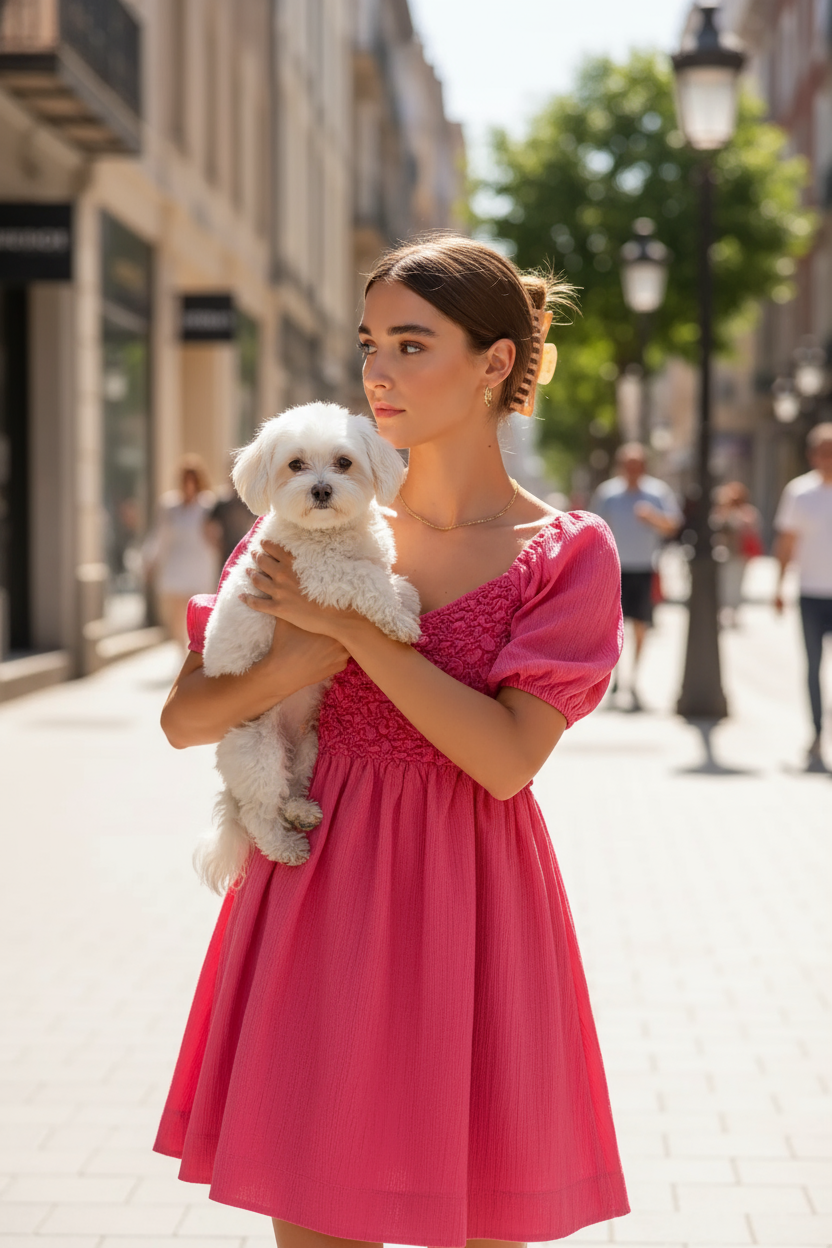 This charming pink mini dress features an eye-catching smocked bodice with intricate gathering details that creates a flattering fitted waist. Made from comfortable cotton blend fabric, this dress offers both style and comfort. The vibrant pink color makes it perfect for spring and summer occasions, while the flowy A-line skirt creates a feminine silhouette. The elastic smocked design ensures a comfortable fit that adapts to your body shape, making it ideal for casual outings, brunch dates, or vacation wear.