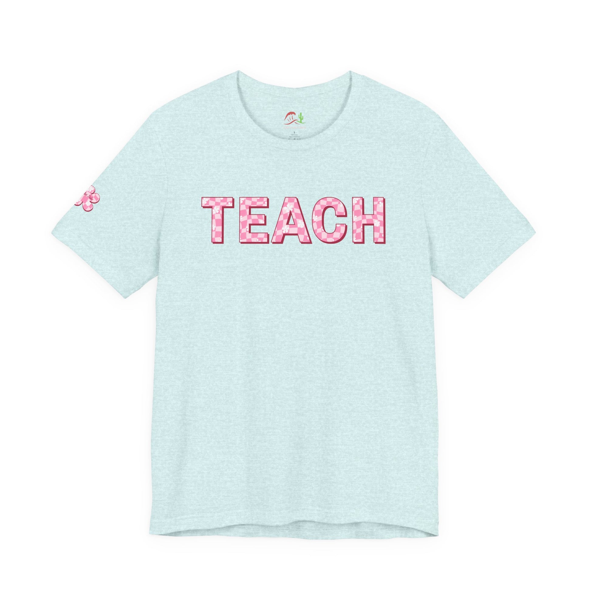 Lightweight, soft, and quietly confident — this tee celebrates the teachers who keep classrooms warm and lively. The peachy heather fabric feels breathable and lived-in from the first wear, while the bold pink 'TEACH' letters add a playful, uplifting touch that reads from across the room. Side seams and shoulder tape give the shirt a steady silhouette that holds up through lessons, recess duty, and after-school plans. The ribbed crew neck sits neatly with cardigans or lanyards, and the tear-away label keeps things comfortable all day. Wear it on casual school days, parent-teacher nights, or during relaxed summer PD sessions — it’s a simple, joyful way to announce what you do and why you show up.