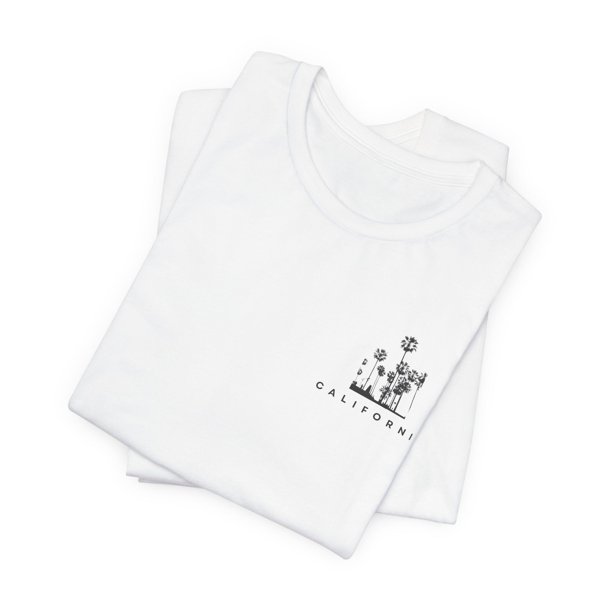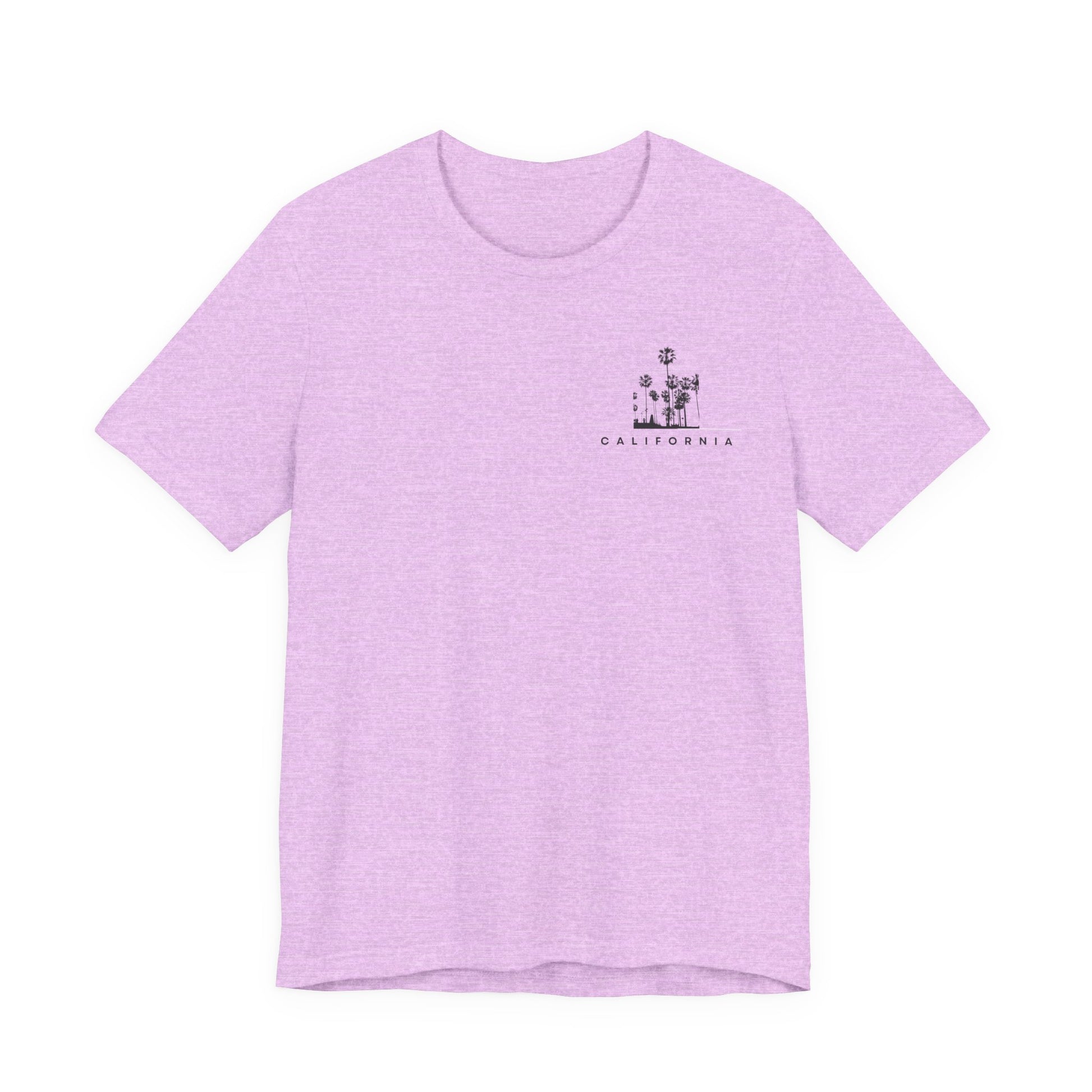 Light, breathable, and quietly iconic — this tee carries a calm California afternoon in its stitches. The front offers a small, intricate vignette near the heart; the back opens into three framed panels of palm silhouettes and shoreline, rendered in minimal black line work. Wear it on warm evenings, at the beach, or while wandering a sunlit city street. It layers easily under a denim jacket or stands alone with shorts and sandals. The retail cut keeps the look clean and modern without feeling stiff, and the soft Airlume cotton sits comfortably against the skin so the design feels like part of you, not just something you put on.